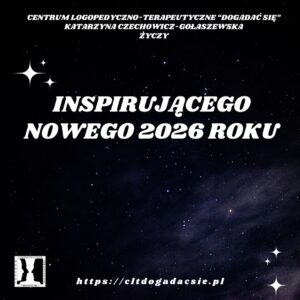 Zespół Centrum Logopedyczno-Terapeutyczne „Dogadać się” Katarzyna Czechowicz-Gołaszewska życzy wszystkim obecnym i przyszłym pacjentom oraz uczestnikom szkoleń i warsztatów roku pełnego wyzwań, możliwości i wiary w poszukiwaniu rozwiązań. Dziękujemy Państwu za zaufanie, którym nas obdarzacie. Mamy głowy pełne pomysłów i niezmierzone zapasy energii, więc nowy rok będzie niezwykły!!!