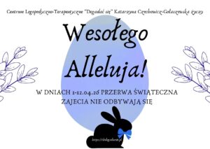 Z okazji nadchodzących świąt wielkanocnych Centrum Logopedyczno-Terapeutyczne „Dogadać się” Katarzyna Czechowicz-Gołaszewska życzy wszystkim radości, rodzinnych chwil i odpoczynku.